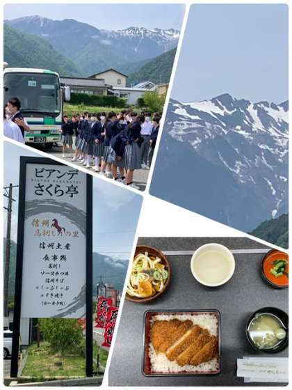修学旅行1日目 7 公開日 2024/05/23 更新日 2024/05/23 出来事 駒ヶ根のビアンテさくら亭で昼食です。ソースかつ丼を美味しくいただきました。 13時10分 バス出発。再び中央道に入り松代造山地下壕に向かいます。