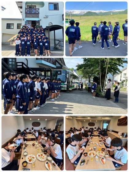 朝食後、各宿舎で退館式と学級写真撮影。8時30分宿舎を出発しラフティング場所へ移動します。