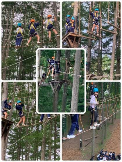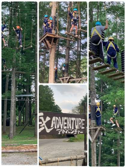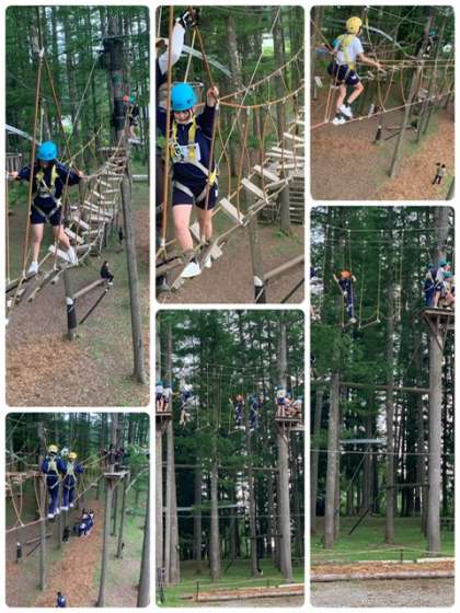 修学旅行2日目 6 公開日 2024/05/24 更新日 2024/05/24 出来事 EXアドベンチャー 午後の活動として、白馬のEXアドベンチャーを体験しました。 ハイエレメントでは高さ8mのアスレチックで、高さの恐怖に「一歩踏み出す勇気」を合言葉に最後までゴールを目指しました。