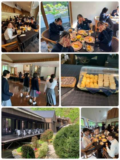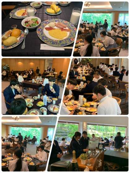 修学旅行3日目 1 公開日 2024/05/25 更新日 2024/05/25 出来事 5月25日(土) 快晴。昨夜の雨も夜中には止み、再び良い天気です。 6時20分起床、7時00分〜シェラリゾート白馬での朝食を美味しくいただきました。 ここまで、大きな体調が悪い生徒もなく3日目を迎えました。