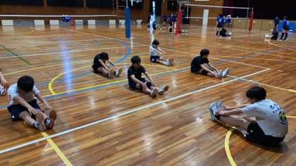 整理体操...「今日も1日ケガなくやれました、ありがとうございました。」と感謝の気持ちをこめて整理運動をします。