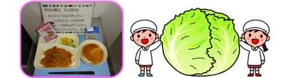 今日の給食では、長野県産のレタスをコーンと合わせてゆで、砂糖、塩、酢、しょうゆ、綿実油でつくったドレッシングをかけています。