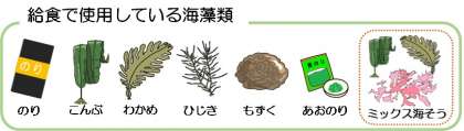 今日の給食では、みそ汁の具として「わかめ」を使用しています。