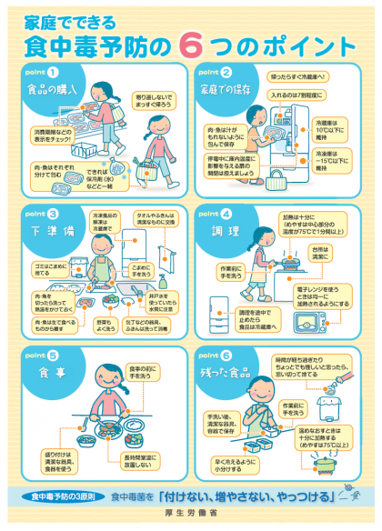 ※詳しくはこちらをご覧ください。⇒〈厚生労働省ホームページ/家庭での食中毒予防〉
