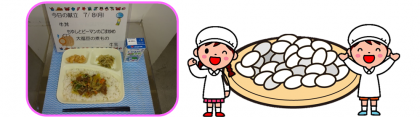 今日の給食では、砂糖、塩、しょうゆを使って甘い味付けの煮ものにしています。