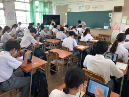 端末を使用して学校教育アンケートを実施しています。生徒は年2回、7月と12月に実施しますが、保護者向けアンケートは、12月の1回とします。