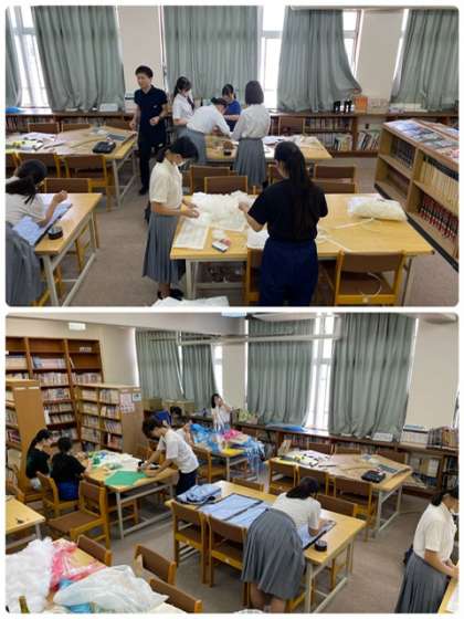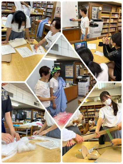 昨日から8月22日(木)までの午前中、3年生の文化祭舞台衣装係が図書室で衣装などの作成に取り組んでいます。