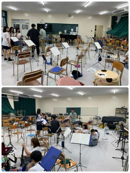 吹奏楽部 公開日 2024/08/20 更新日 2024/08/20 出来事 明日、吹奏楽部が昨年に引き続き、大阪城音楽堂での「たそがれコンサート」に出場します。 明日の本番に向けて、新しい音楽室(旧視聴覚教室)で今日も練習していました。