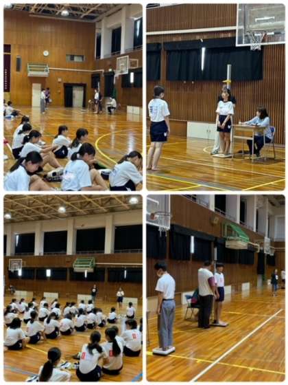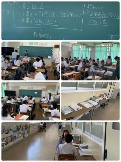 8月26日 公開日 2024/08/26 更新日 2024/08/26 出来事 ●本日は始業式の後、各学年毎に学級活動や身体測定(2計測)、教育相談活動を実施し、3限終了後下校です。 学級活動では、夏休みの宿題を集めたり、夏休みの絵日記を書いたりしていました。 また、本日台風接近に伴い、非常変災時における学校の臨時休業措置のプリントを配布しています。1学期にも配布していますが、今一度ご確認くださいますようお願いします。