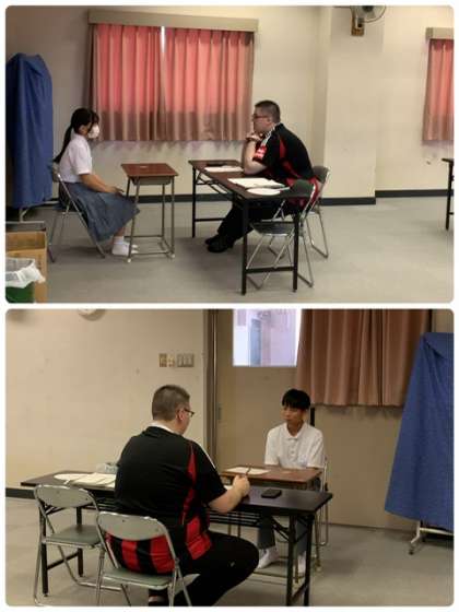 ●2年生 英語の授業でC-NETの先生と夏休みの思い出について対話するテストを実施しています。