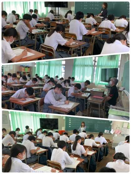 ●台風10号による警報も無く、予定通りに3年生実力テスト・1・2年生課題テストが行われました。