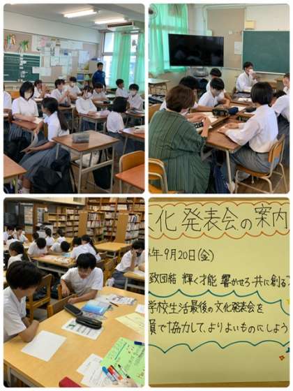 放課後、生徒専門委員会が開催されました。文化祭や大会大会が近くなり、各委員会でも行事に向けた取組が行われています。