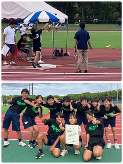 それぞれが奮闘し、応援する中で、1年生女子砲丸投げに出場した生徒が自己ベストを出し、見事大阪市1年生の部で優勝しました。日頃から朝練に参加し、家でも頑張った成果を出すことができました。次の府大会でも実力を発揮してほしいです。