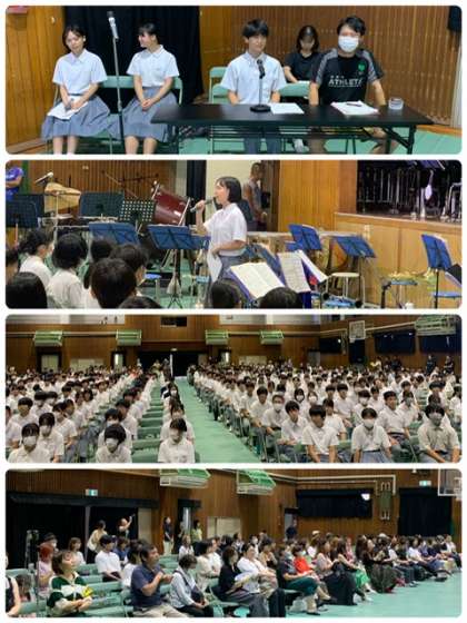 舞台発表の部 展示見学の後は体育館で舞台発表の部が開催されます。 文化委員の司会進行で、開会の挨拶が行われました。