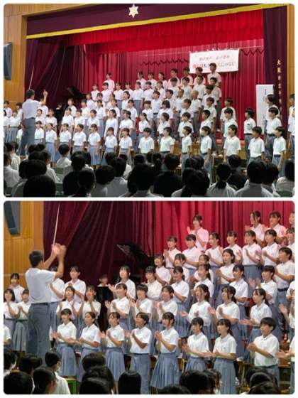 文化発表会 公開日 2024/09/20 更新日 2024/09/20 出来事 1年合唱 合唱コンクールでの優秀賞 3組『友達の友達』 最優秀賞 4組『マイ バラード』の合唱のあとは学年全体で『RPG』を合唱。 〜響け歌声 届け感動〜 「僕らはもう 一人じゃない」 を合言葉に感動を届けてくれました。