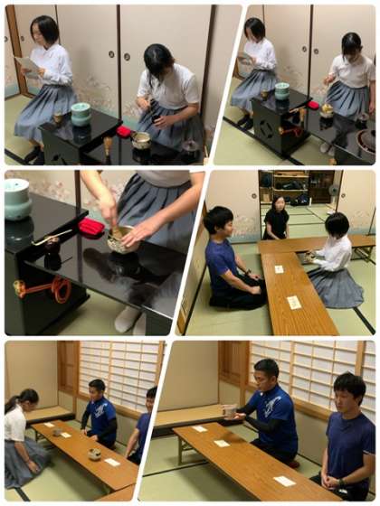保健委員会・茶道部 公開日 2024/10/02 更新日 2024/10/02 出来事 ●保健委員会 1学期に多くの検診が実施され、所見のあった生徒にはプリントが渡され、夏休み中に受診を勧めています。 虫歯などは放置することで、より治療が難しくなることが多いです。まだ受診されていない方は早めに医療機関にて受診してください。 ●テストが終了して、部活動も再開しました。 茶道部では、お茶会が開かれ、お点前をいただきました。