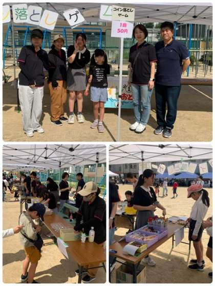 本日11時〜14時、新平野西小学校で親子ふれあいまつりが開かれ、平野中学校PTAもコイン落としゲームで出店しました。