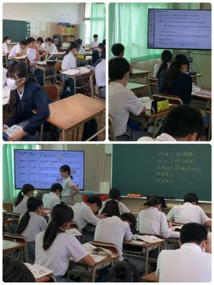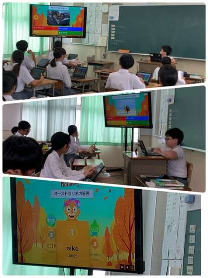 10月7日(月) 公開日 2024/10/07 更新日 2024/10/07 出来事 ●1年社会 生徒が端末を使い、オセアニアの復習をクイズ形式で実施しています。 答える生徒も端末で正解番号を選び、オールスター感謝祭の感じで楽しく取り組んでいます。 ●2年英語・3年家庭科 ・2人1組のペアで英語で説明しています。 ・家庭科で、幼児の生活と遊びについて学習しています。 ●1年校舎の3階女子トイレを和式から洋式に変える工事が終了(便器のみ)し、今日から使用可能となりました。