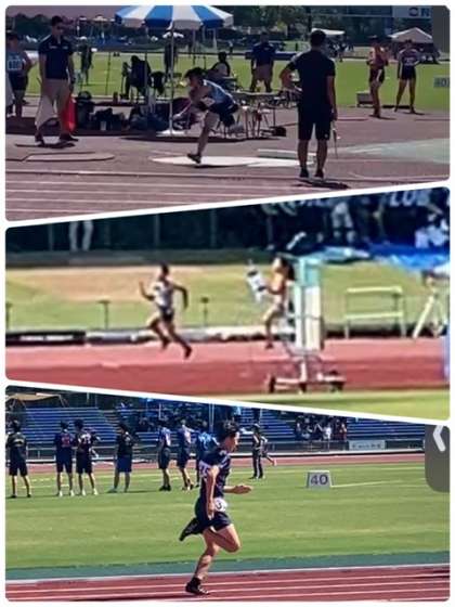 本校からは、女子共通100m×4、男子共通100m×4、女子共通砲丸投げ、女子共通100m、男子共通100m、男子共通1500mに出場しました。