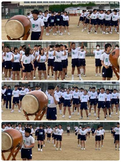●6限、体育大会のエールボイスの縦割りの全体練習をしました。