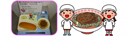 今日の給食では、中華風のスープにチンゲン菜、もやし、にんじんなどの野菜と中華麵を加えて味付けしたスープ麺に、テンメンジャンやみそなどで味付けした挽肉をのせて食べてもらうようにしています。