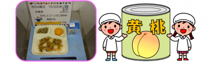 今日の給食では、山形県産の黄桃を缶詰に加工したものを使用しています。