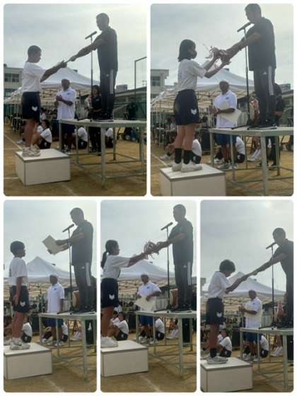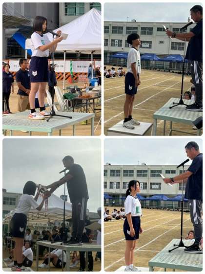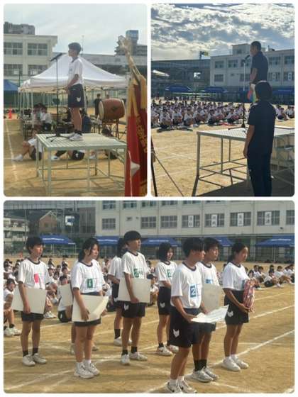 体育大会 20 公開日 2024/10/26 更新日 2024/10/26 出来事 閉会式 成績発表・表彰 1年生 優勝1組 準優勝2組 2年生 優勝3組 準優勝1組 3年生 優勝2組 準優勝1組 体育委員代表挨拶・学校長講評・国旗・校旗降納・閉会宣言