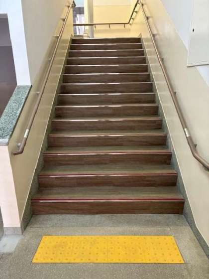 ・学校長・・2号館北側の階段が完成し、今日から使用できるようになります。
