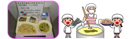 今日の給食では、すまし汁と大豆の煮ものだし汁として、だし昆布と削り節のだしを使用しています。