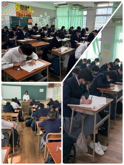 期末テスト始まる 公開日 2024/11/27 更新日 2024/11/27 出来事 11月27日(水) 本日より期末テストが始まりました。 どの学年もテストに懸命に取り組んでいました。 明日のテストは 全学年 英語・数学・保体(40) です。 体調にはくれぐれも気をつけてください。