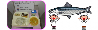 今日の給食では、小さめの鰯を使用し、砂糖、酢、しょうゆ、料理酒で味付けし、千切りのしょうが、細切りの昆布を加えてしょうが煮にしています。