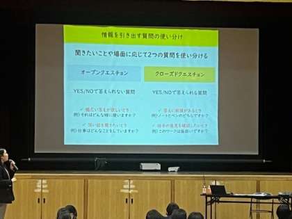 グループワークなどを通して「職場体験で何をどのようにして学んでいくのか」を考えました。そのために働くことを考えたり、知りたいことを引き出す質問の練習をしたりしました。