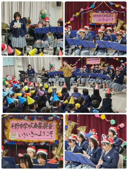 吹奏楽部 明日の連絡 公開日 2024/12/17 更新日 2024/12/17 出来事 12月17日(火) 本日、新平野西小学校のいきいき活動のクリスマス会に吹奏楽部が出向き、小学生にクリスマスソングなどを披露しました。 小学生の大合唱が演奏を引き立ててくれて、楽しい時間を過ごしたようです。 【明日の連絡】 明日も懇談会で45分の4時間です。 明日の時間割は(水)の1245です。 11月27日配布の平中だよりから変更となっています。