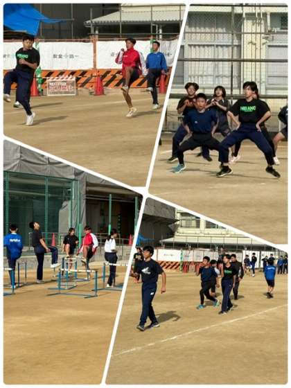 ●グランドでは陸上部が4校での合同練習をしています。