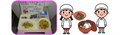 お正月には、昔から新年のお祝いと健康と幸せの願いを込めた料理を食べる風習がありました。各ご家庭でも、色々な料理を楽しまれたことと思います。少し遅くなりますが、給食でもささやかながら、毎年、正月の行事献立として実施しており、本日は「ぞう煮」と「ごまめ」を献立に取り入れています。