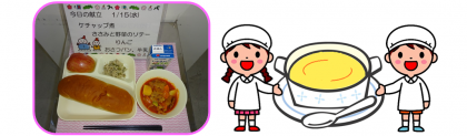 大阪市の学校給食では、洋風のスープや煮ものなどに、鶏肉を使用して出汁をとった粉末の「チキンブイヨン」を使用しています。今日の給食では「ケチャップ煮」に使用しています。