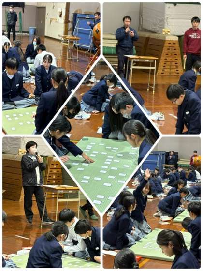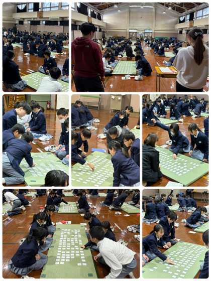 昨年12月に予定し、風邪やインフルエンザの流行で延期された百人一首大会が5・6限に開催されました。