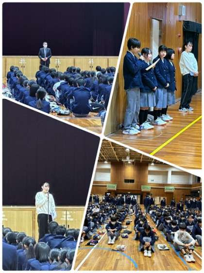 ・校長先生からは如月(きさらぎ)の由来や2年生の職場体験や3年生の入試に向けて、体調面で気をつけてくださいと注意がありました。