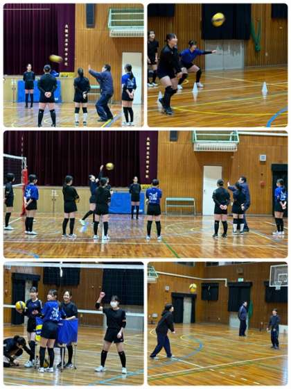 体育館では女子バレーボール部の練習に卒業生も来てくれています。