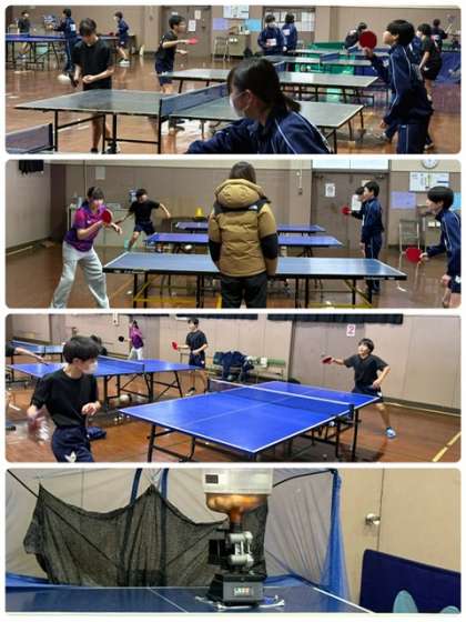 集会所では卓球部の練習に入試が終わった3年生も参加していました。