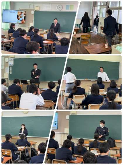 1年生が5・6時間目、講師をお招きして職業講話を実施しました。
