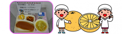 今日の給食では、和歌山県産のはっさくを使用しています。
