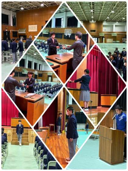 ●2年生が朝から体育館で卒業式の練習のため、シートを敷いて、椅子を並べるなどの準備をしてくれました。