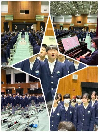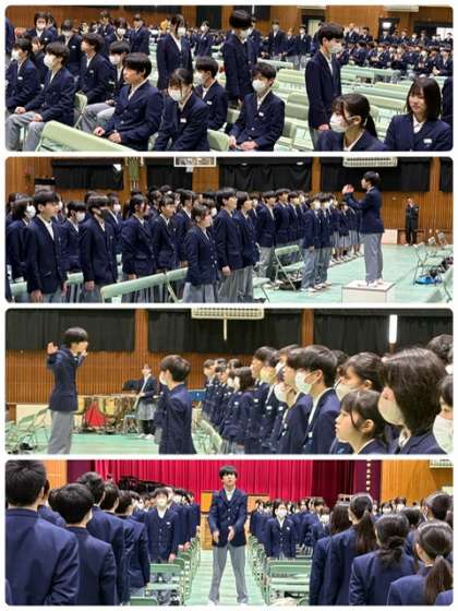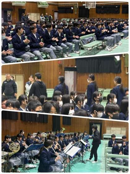 ●明日の卒業式に向けて、2・3年生と吹奏楽部による予行が行われました。