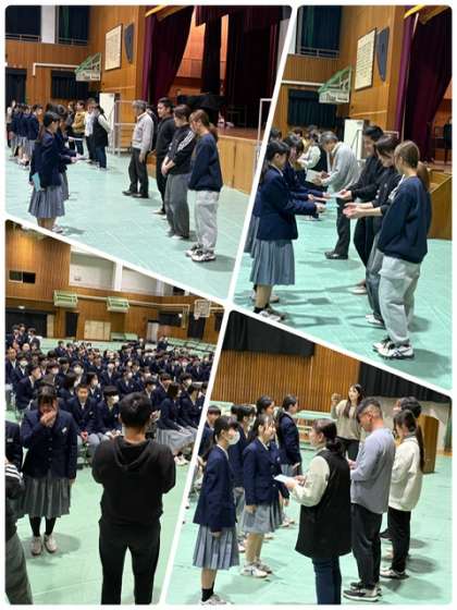 3年間の思い出を映像で振り返り、学年の先生一人ひとりから3年生に言葉がおくられました。