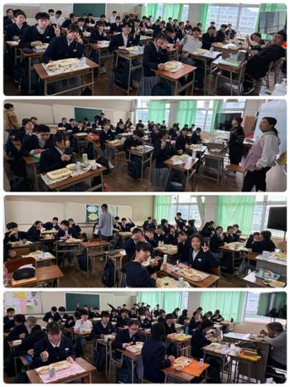 3年生は最後の給食です。 栄養教諭の先生・給食調理員の方々、いつも美味しい給食をありがとうございました。
