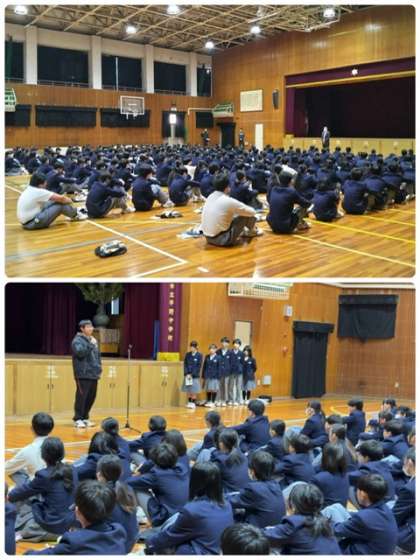 3月17日(月) 公開日 2025/03/17 更新日 2025/03/17 出来事 ●全校集会 3年生が卒業し、1・2年生だけでの全校集会です。 校長先生からは、卒業式の様子のお話と、1・2年生に今後の期待を込めた言葉が送られました。 生活指導部からは、「服装不備ゼロが達成できなかったが、リベンジしましょう」とお話がありました。