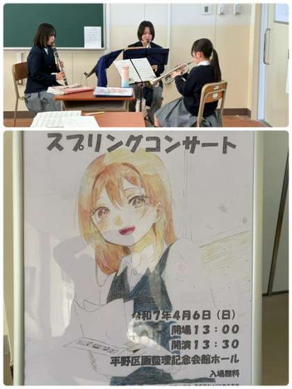 明後日、4月6日(日)のスプリングコンサートに向けて、卒業生も来て練習をしています。