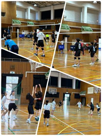 午後の体育館 公開日 2025/04/19 更新日 2025/04/19 出来事 午前中は女子バレーの大会、午後から は男子バレーボール部が白鷺中と合同練習。 奥の半面は女子バスケが明日の大会に向けて練習をしています。