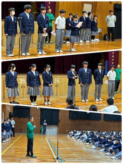 ●生徒議会での、各専門委員会報告(月間目標)が代表者から行われました。
